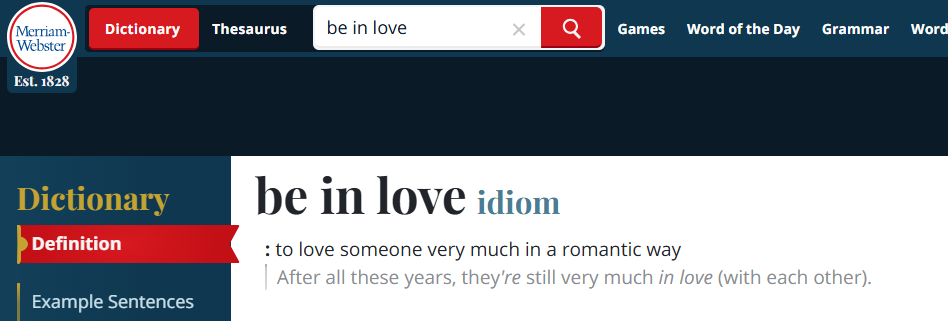 My Fave, Merriam-Webster Dictionary, describes being “in love” this way: